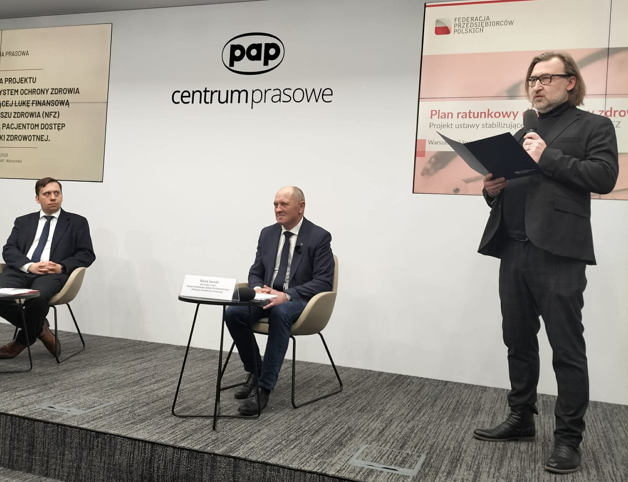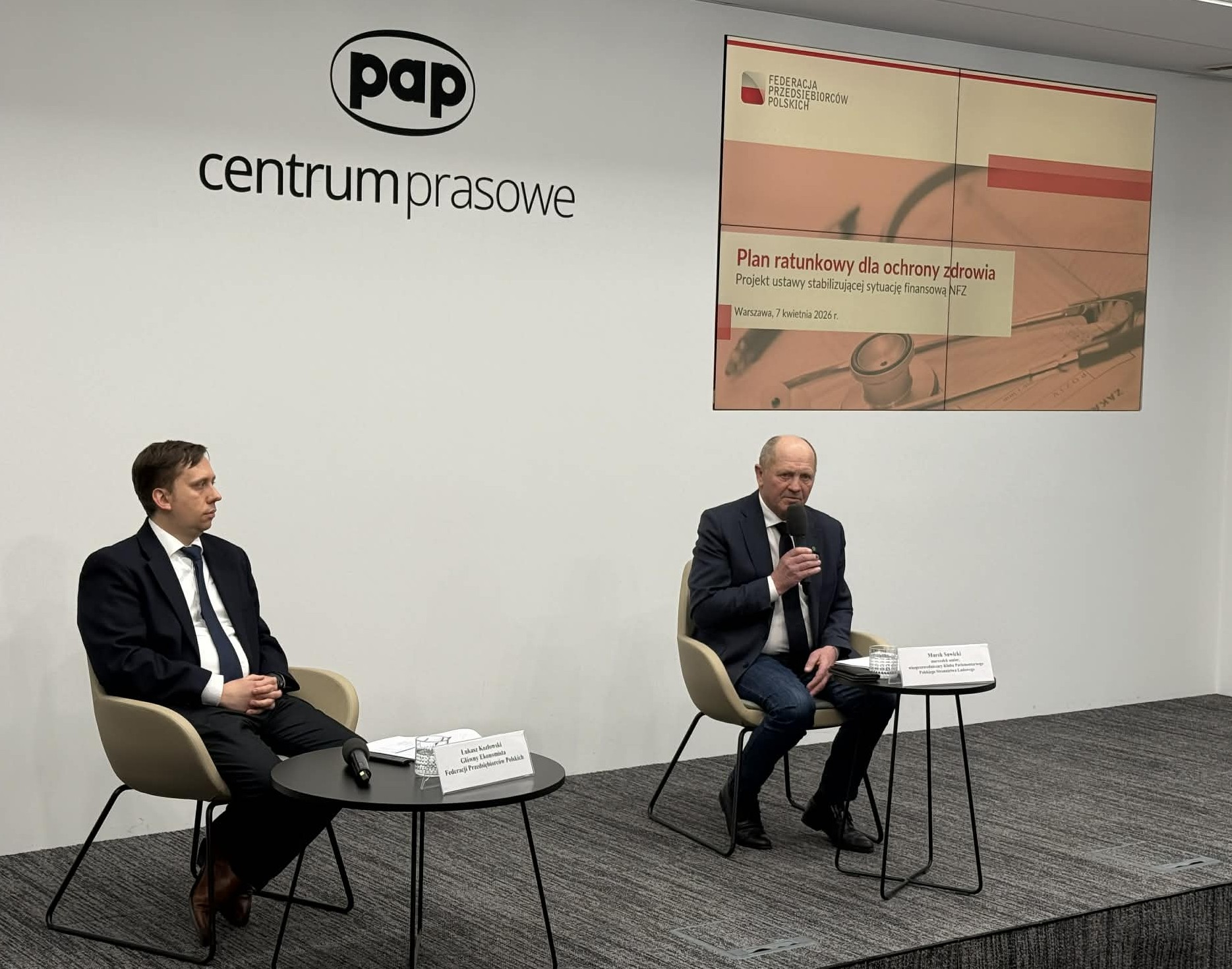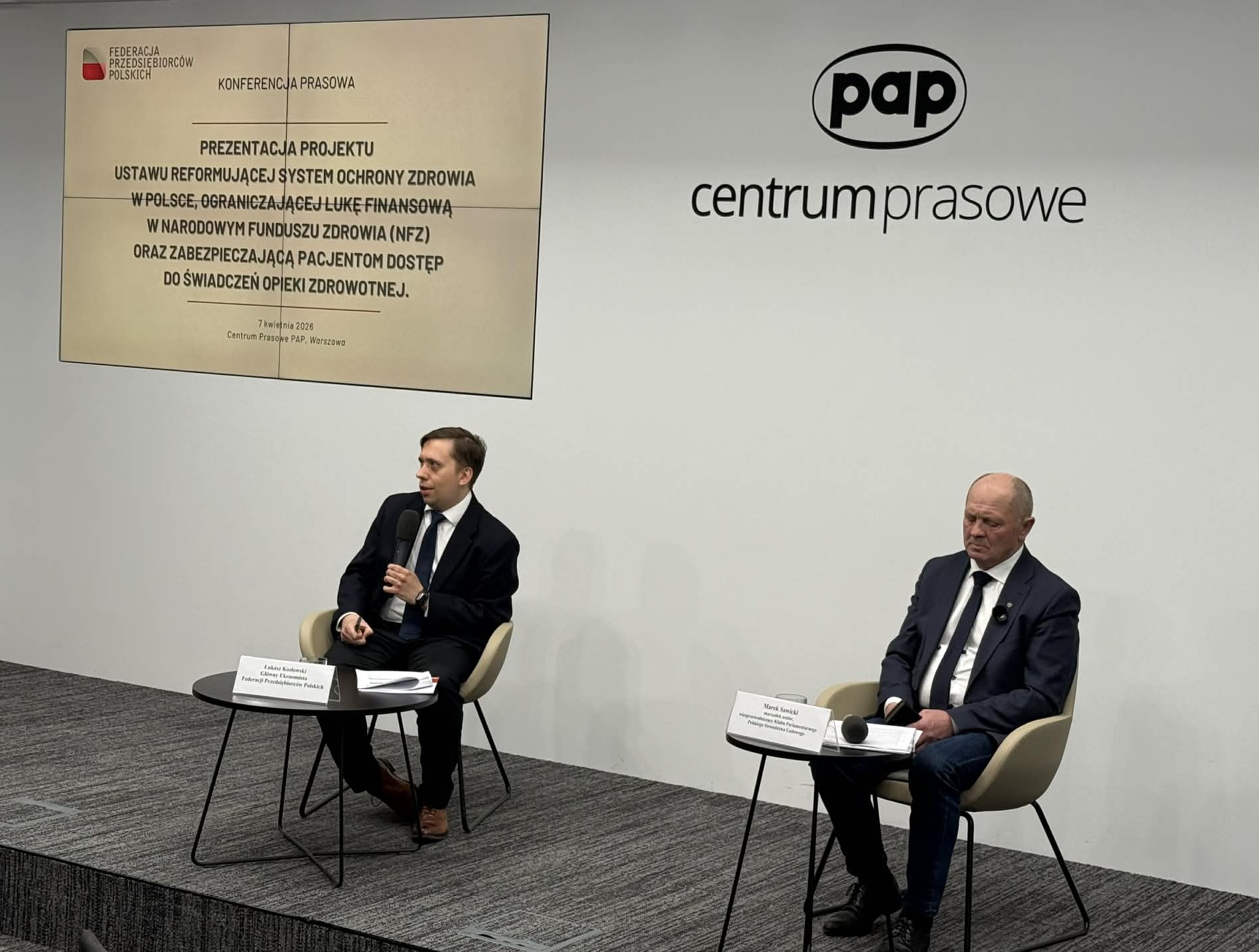 Dzisiaj w siedzibie Polskiej Agencji Prasowej odbyła się konferencja prasowa poświęcona prezentacji reformy naprawczej polskiego systemu ochrony zdrowia. Zakłada ona kompleksowe zmiany, których celem jest poprawa dostępności świadczeń, stabilizacja finansów oraz usprawnienie organizacji opieki medycznej. Założenia przedstawili Marek Sawicki – Marszałek Senior, wiceprzewodniczący Klubu Parlamentarnego Polskiego Stronnictwa Ludowego oraz Łukasz Kozłowski – główny ekonomista Federacji Przedsiębiorców Polskich.
