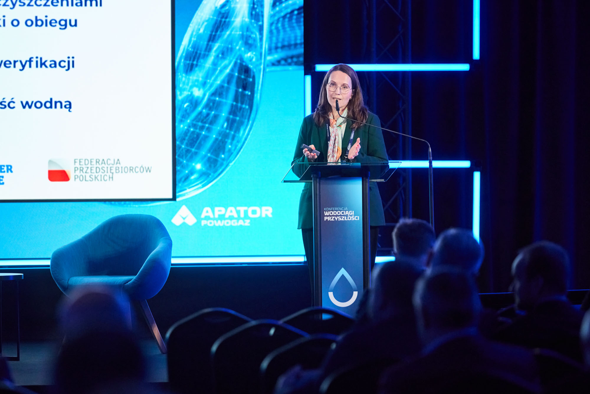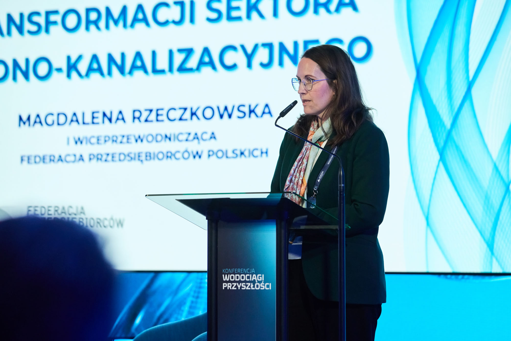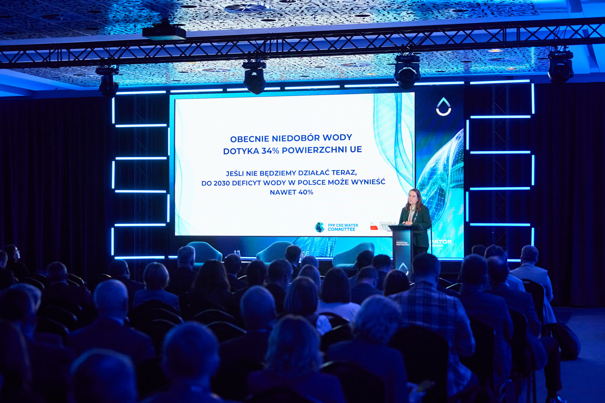 W gronie prelegentów wystąpiła Magdalena Rzeczkowska – Pierwsza Wiceprzewodnicząca Federacji Przedsiębiorców Polskich ds. europejskich oraz Dyrektor Biura FPP w Brukseli. Podczas swojej prezentacji przedstawiła kluczowe uwarunkowania związane z finansowaniem inwestycji wodnych w nadchodzących latach, uwzględniając przede wszystkim perspektywę unijną. Zwróciła uwagę na kluczowe wyzwania inwestycyjne, ale też konkretne rozwiązania: nowe modele finansowania (m.in. blended finance, PPP, blue bonds), rosnącą rolę Europejskiego Banku Inwestycyjnego oraz  potrzebę mobilizacji kapitału prywatnego i zwiększenia skali inwestycji.